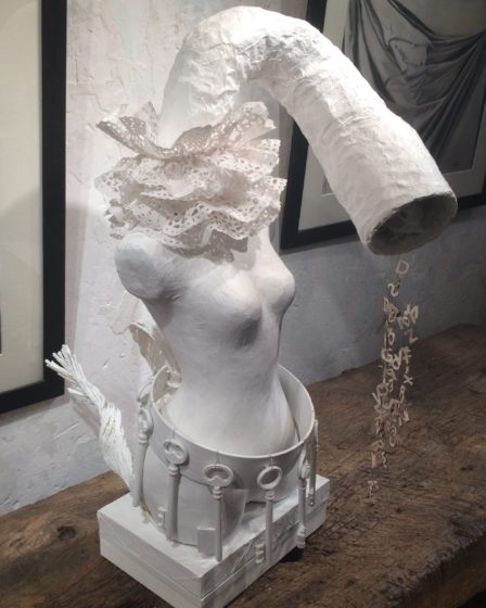 Sculpture Texte de Richard ABIBON La tête de cette femme est remplacée par une corne d’abondance d’où ruisselle un torrent de lettres. Elle a donc des choses à dire, ou à écrire, et c’est déjà ce que fait Chantal Lorio à travers le mode d’expression qu’elle s’est choisie. Ces lettres coulent de source vers la …