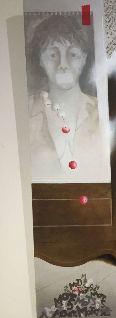 C’est là qu’ont roulé les autres perles rouges et qu’un P intempestif vient remplacer le M de « mots », ce qui produit le « Stop » des limites dont je viens de parler. Par retour, il aimerait mettre un coup d’arrêt à la domination masculine.