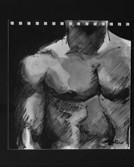 Dessin encre de chine et lavis triptyque 31 cm x 72 cm Série Corps