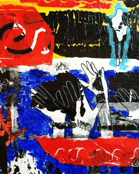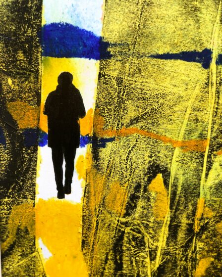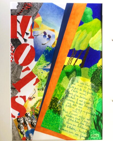 Disparaître Dessin Technique mixte : monotype sur papier de soie marouflé sur encre colorée, pastel gras, crayons de couleurs, encre noire 50 cm x 70 cm