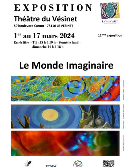 Je participe au Salon Le Vésin’Art qui se déroule du 1er mars au 17 mars. Cette année le thème est le monde imaginaire. J’aurai grand plaisir à vous rencontrer et échanger avec vous lors du vernissage mercredi 6 mars à partir de 18h. Je serai également présente le jeudi 7 mars de 15h à 16h …